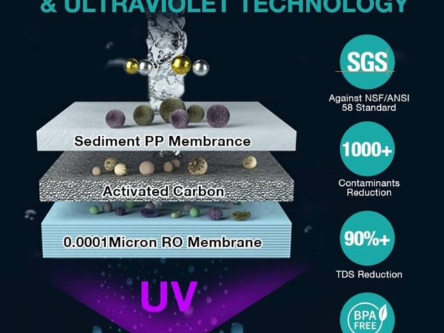 It does this thanks to its three additional stages of filtration, which include a sediment filter, activated carbon and ultraviolet (UV) light. When you add the RO stage, that’s four total stages of filtration. The first stage, which is the sediment filter, removes dirt, dust, sand, and other particulate matter from your water. The second stage, activated carbon, is highly effective at removing most chemical contaminants, such as chlorine, chloramine, VOCs, PFAs, etc. The third stage, the RO membrane, removes fluoride as well as heavy metals, such as lead, chromium, and nickel. Finally, the water passes through the fourth stage, a UV light chamber, which zaps the water with powerful ultraviolet light, altering the DNA of bacteria, viruses, and other pathogens — like parasites — and killing them on the spot.